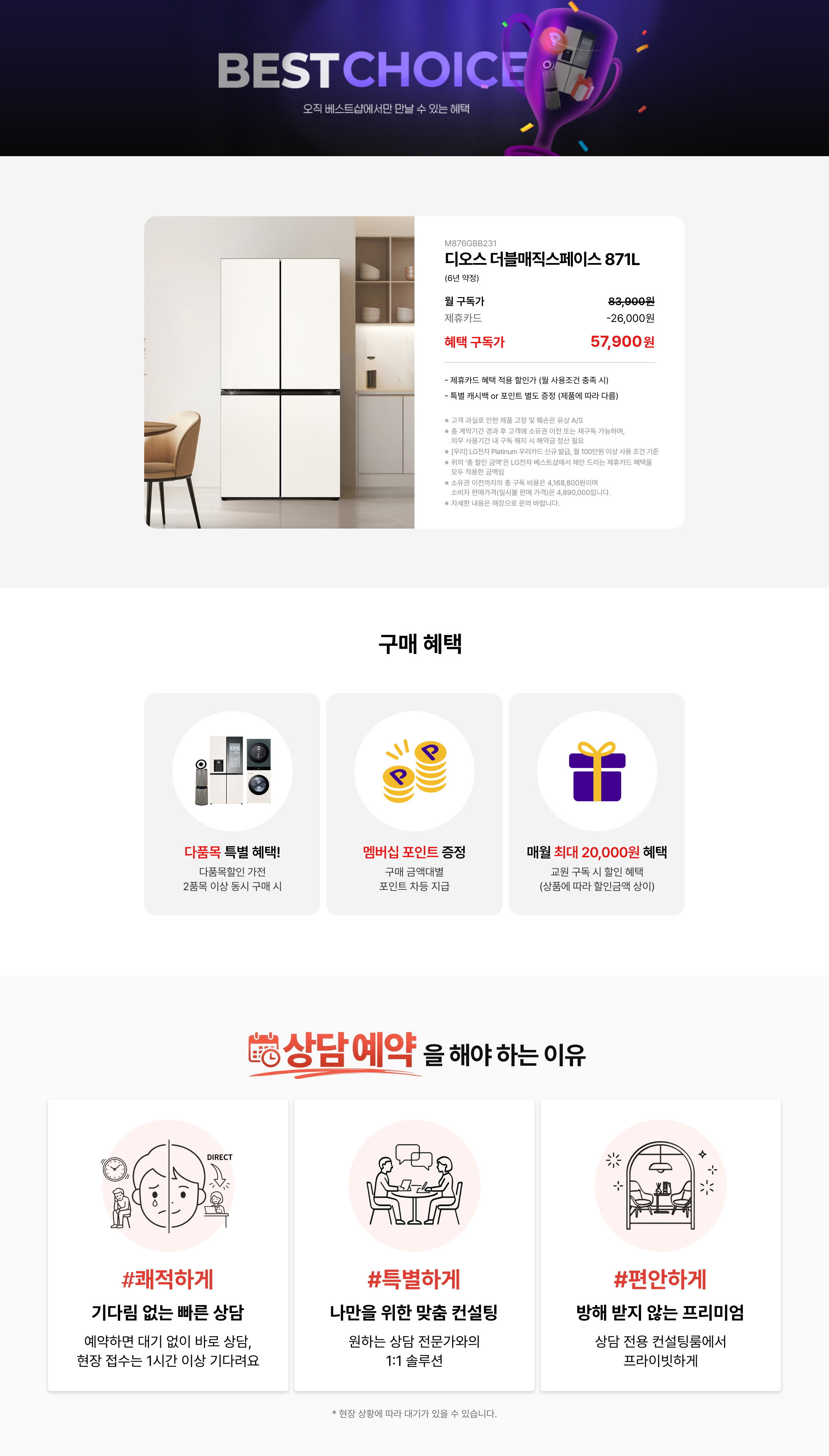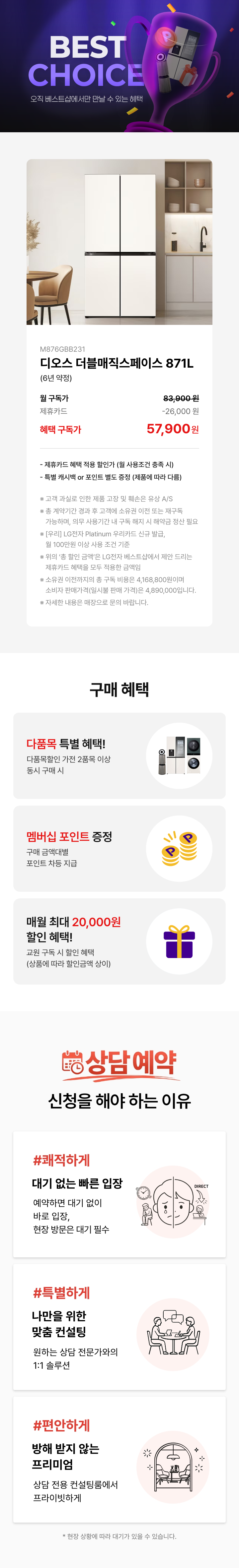 귀하께서는 위와 같은 개인정보 수집/이용에 동의하지 않을 권리가 있으며, 거부하셔도 매장 상담 예약 신청은 가능하나, 매장 상담 예약 시 진행되는 이벤트 참여가 제한됩니다.